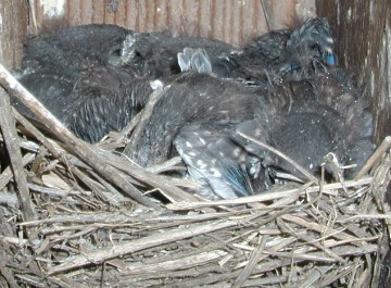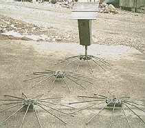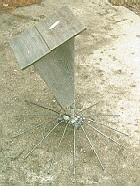 | Last year the raccoon found the birdhouses and raided the Tree Swallow nests. Fortunately most of the baby Swallows had left the nests. | This year I am trying this circle of ¼ inch rods to see if the coon can climb around it. |