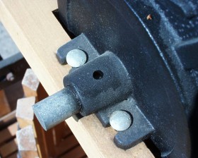 I drilled a quarter inch hole in the cast iron housing where the grinder shaft fits in. Then I can add some vegetable oil as lubricant for the spinning shaft. |