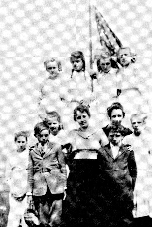 The bell in the cupola was tolled at 8:30; school started at 9 a.m. Morning classes were opened with the Pledge of Allegiance, followed many times with the singing of "America" and other patriotic songs. In warm weather we gathered outside by the flagpole for the ceremonies.