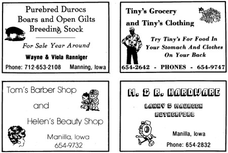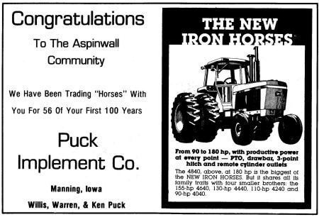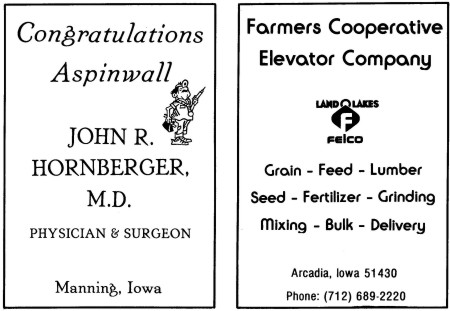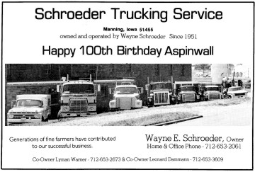P.C. Roggendorf and family lived just across the railroad tracks at the first place north of Aspinwall. He came to the U.S.A. when just a boy of 10 with his father. The whole family attended school in Aspinwall. Pete was president of the school board for many years; he was also Justice of Peace for years until he finally sold the farm and moved to Manning.