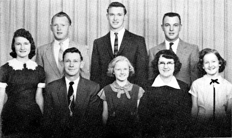 Lester and Ruby are now retired and living in Manning. LeRoy owns and farms the old ManCryCo #2 farm west of Manning. Richard is owner-operator of the Manning Auto Supply. Sandra (Mrs. Keith Hass) is secretary and agent at Manning Insurance Agency. Geraldine (Mrs. Kenneth Spies) is bookkeeper at Manning Heating and Sheet Metal and Spies Fur Company. Nancy (Mrs. DeWayne McCord) lives at Carroll where she clerks at a department store. Kenneth was tragically killed in a car-pedestrian accident in Cedar Falls in 1973; at the time, he was serving as state president of the Iowa Chapter of the Epilepsy Foundation of America.