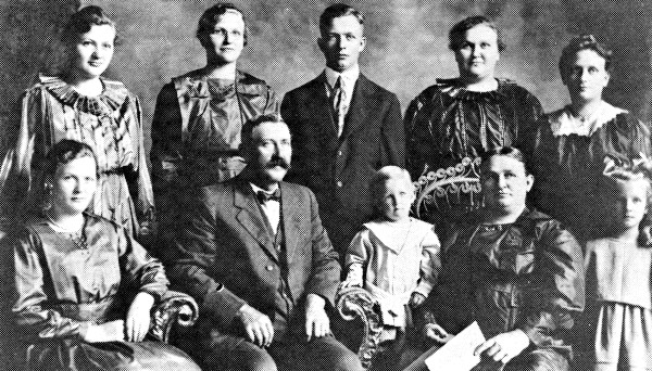 They had eight children: Anna (Mrs. John Lafrentz), Adele (Mrs. Harry Kruetzfeldt), Clara (Mrs. Vertus Lamp), Ella (Mrs. Otto Lamprecht), William married to Minnie Westphalen Taylor, Lillian (Mrs. Louie Wegner), Gladys (Mrs. Leo Dalton), and Hubert married to Grace Mielk. There are 25 grandchildren.