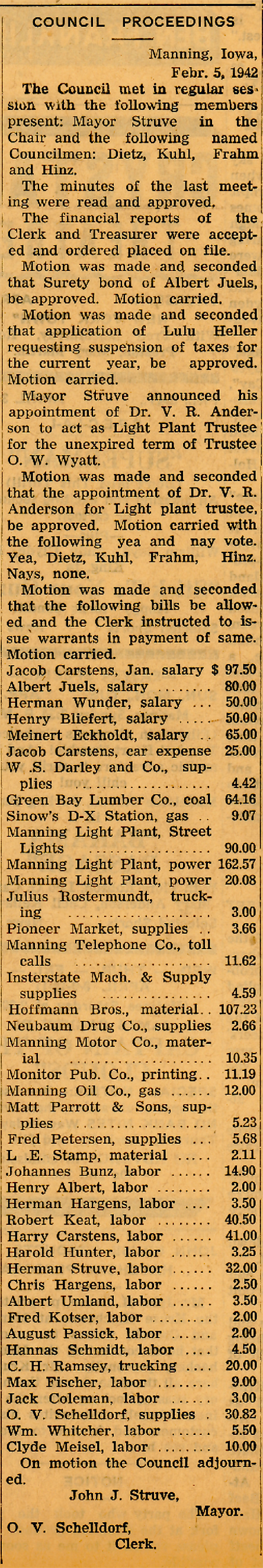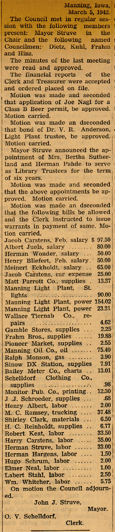 406 Main...he married Alice Wilhelm and they moved to Manning from Aspinwall in 1947, and then moved to Carroll in 1959.