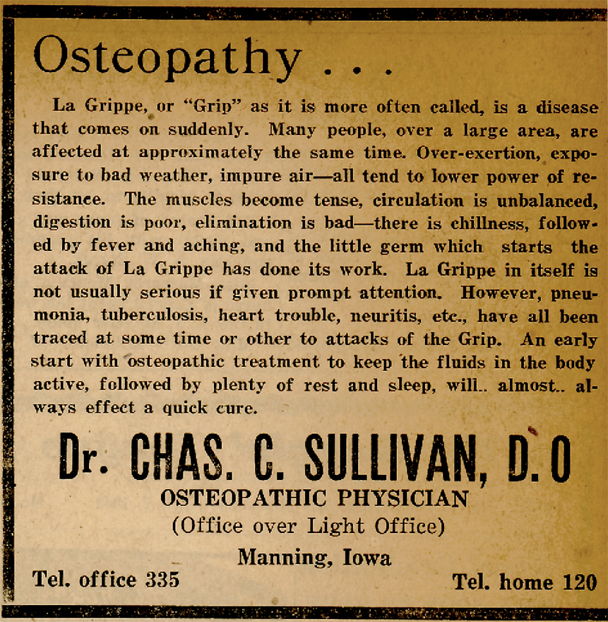 Dr. Sullivan was 55 years old in January. He had practiced osteopathy in Carroll since September, 1943, when he moved there from Manning where he practiced 16 years.