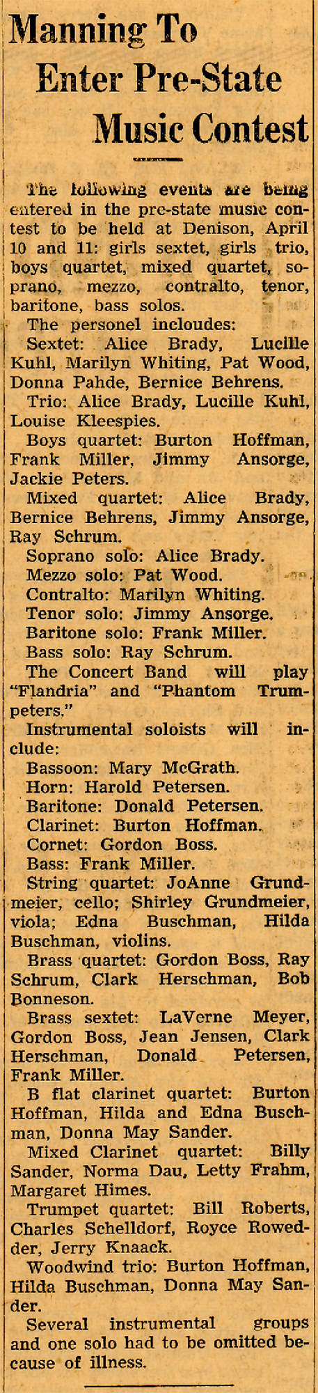 If you utilize my web page database and go through the obits I post and notice I don't have some of your Manning classmates, friends, or relatives listed,