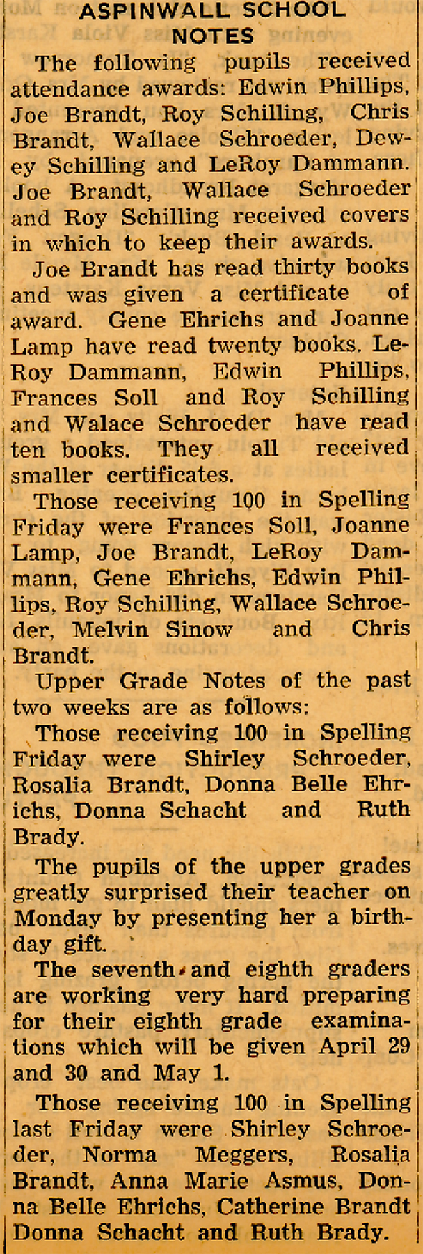 Mother taught several of these students listed, such as her brother, Gene, and also LeRoy Dammann, Roy Schilling...
