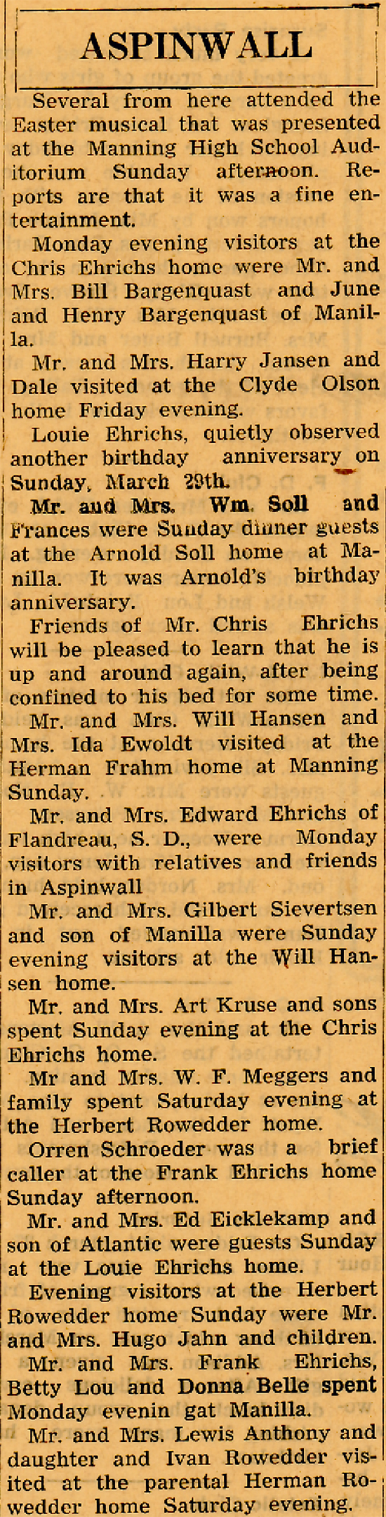 Roger Hansen and his wife are visiting in Manning and they brought along some more Manning history for me to scan.