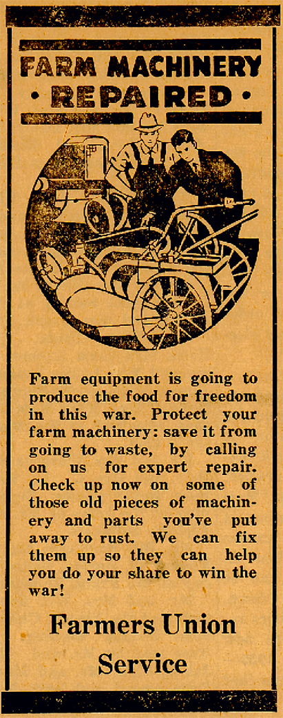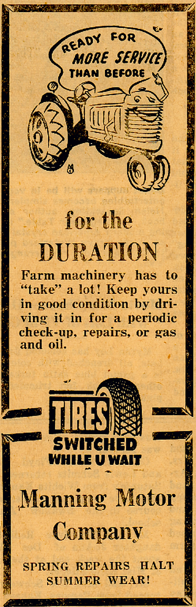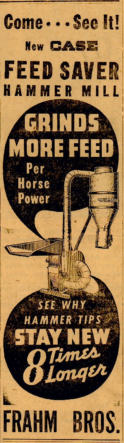 Frahm Motor Company, carried the J.I. Case farm implement franchise from 1942 until the late 1950s.