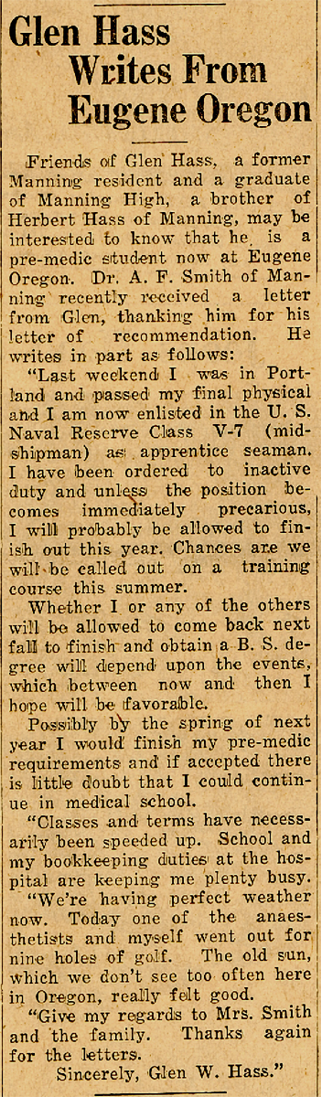 June 11, 1942 Manning Monitor - Albert & Willis Puck