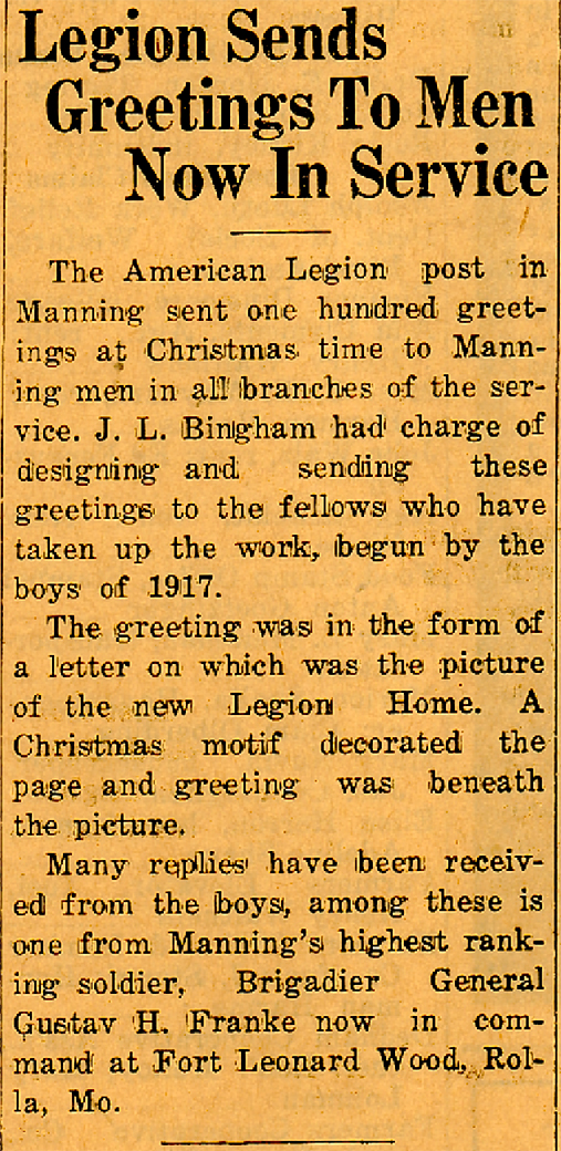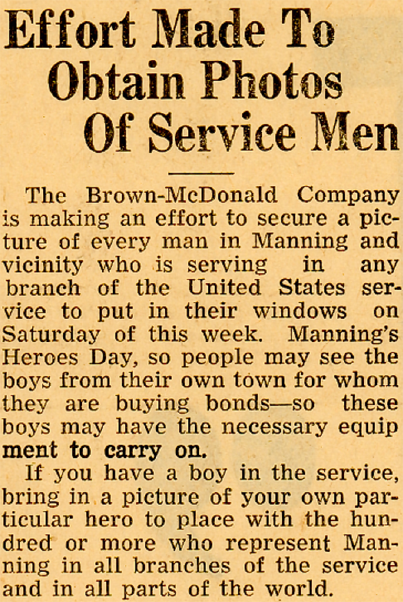 Just as a reminder: the Manning History book committee continues to work on a Manning area Veterans' history book
