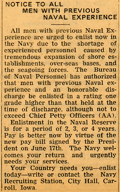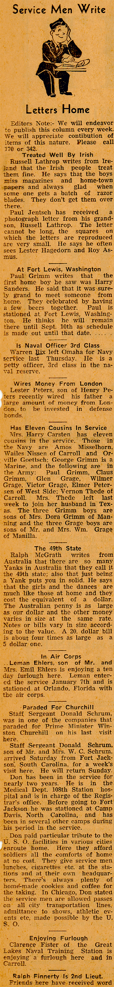 Wednesday morning, June 6, 1945, as he was returning to Carroll from Manning.