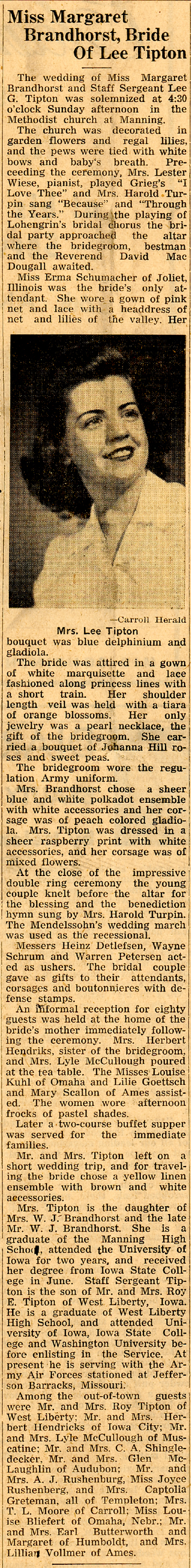 In lieu of flowers, memorials are preferred to the First United Methodist Church in Carroll.