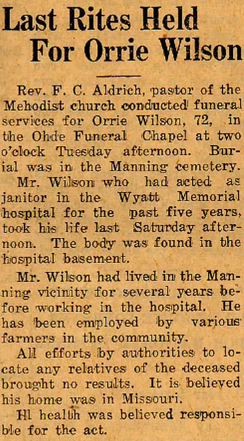 In 1926, Orren Wyatt erected the Wyatt Memorial Hospital on Main Street. He directed