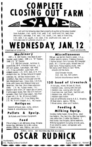 Uncle and Aunt moved to Milford, Iowa (I still have a copy of the flyer announcing the sale
