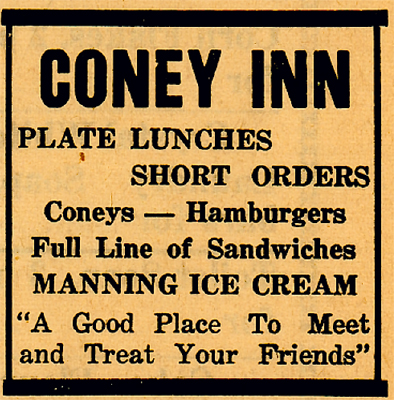 2 Coney Inn (Jack Morrell --- son was Dick) -- small eating establishment --- ice cream