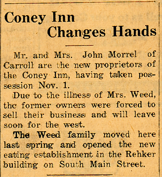 Manning Monday to make their home. Mr. and Mrs. Morrell will operate the Coney Inn, which they bought from Art Weed.
