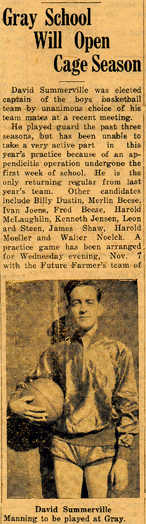 David K. Summerville, son of Isabelle and William Summerville, was born April 28, 1921. He attended Gray Elementary, Gray High School