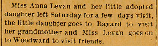For nearly forty years Miss Levan owned the farm adjoining Manning on the north, disposing of same in the spring of 1919. From her residence on this farm she saw Manning grow from nothing to a little city of nearly two thousand souls and property increase in value fifty fold.