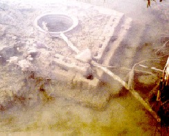 | This photo shows the gravel filter where the submersible pump is placed. The water depth is 20 inches here and you can see the bottom.