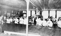 Although hard times prevailed in the early 1930's, restaurants continued to operate. It has been said that hamburgers cost a nickle, "but in those days who had a nickle?" In existence in 1931 were the Virginia Cafe at 303 Main, Graves and Siem at 314 Main, Livingston Pool and Billiard Hall at 316 Main, Mrs. Amanda Petersen's Green Lantern Tea Room at 421 Main, Odessa Holmberg's Mayflower Cafe at 405 Main, Robert Kuhl's Princess Cafe at 406 Main, Henry Albert's Temperance Parlour at 326 Main, and the Manning Hotel, at 105 Main, with Mrs. Kathryn Eden as proprietor. Mr. and Mrs. V.C. Hensen also owned two hamburger shops, "Vick's" on Main Street in Manning and the second in Templeton.