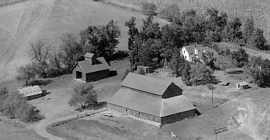 The barn was built before 1906, the Quonset 1969, the