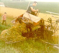 ![]() | In the "70s" Manning had a summer celebration called Ag Day and we usually held old time farming events during those days. Here is an old pull type binder that was used on an oats field on our farm. |