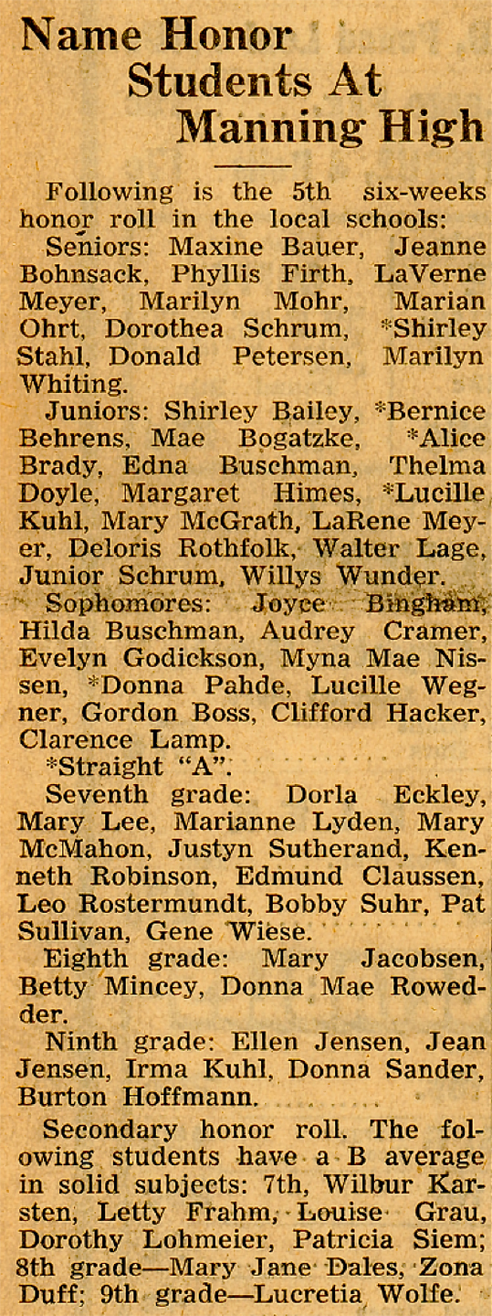 If you utilize my web page database and go through the obits I post and notice I don't have some of your Manning classmates, friends, or relatives listed,