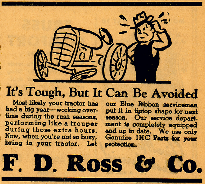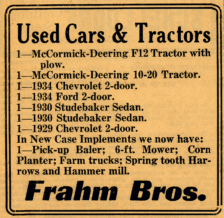Frahm Motor Company, carried the J.I. Case farm implement franchise from 1942 until the late 1950s.