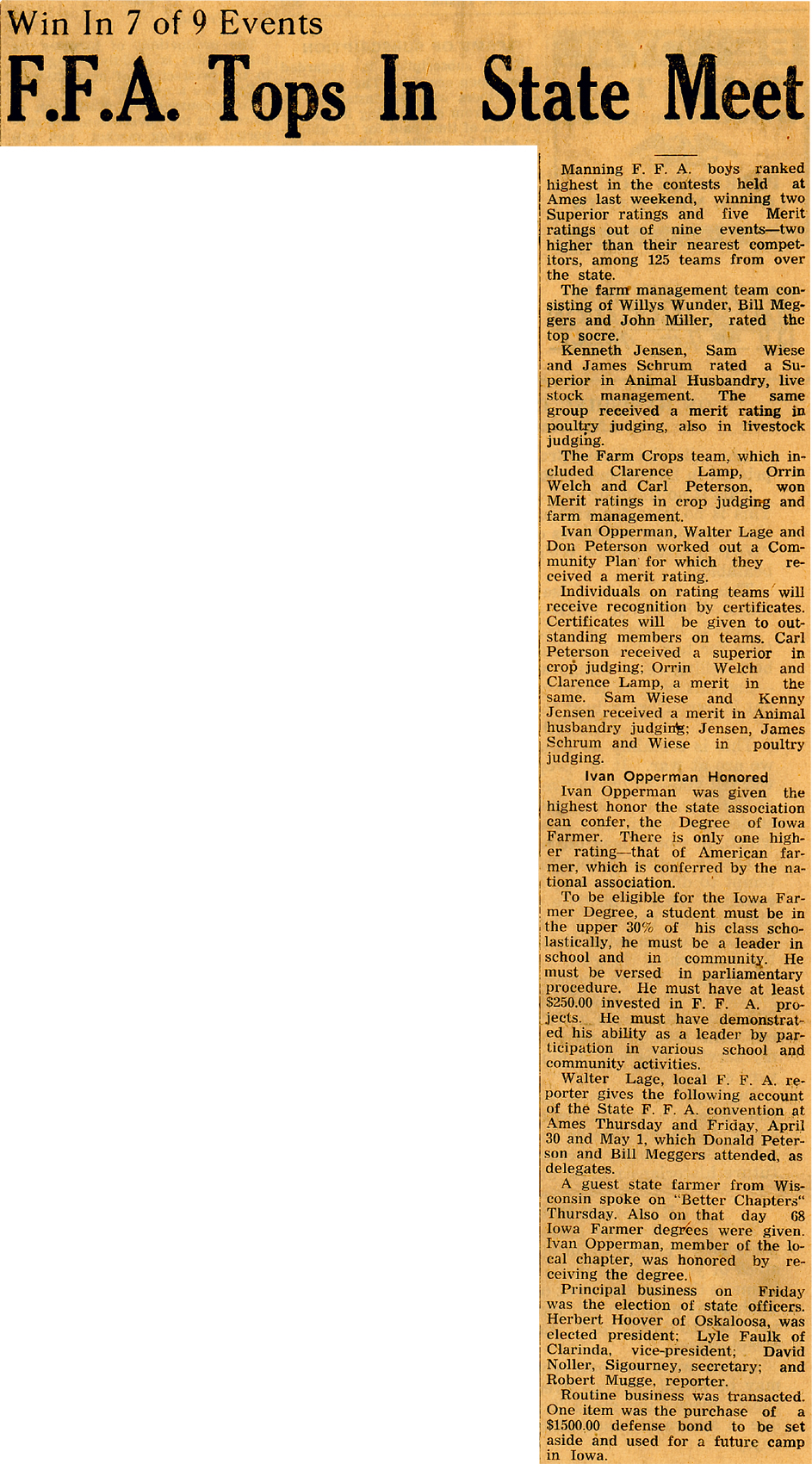 Wednesday morning, June 6, 1945, as he was returning to Carroll from Manning.