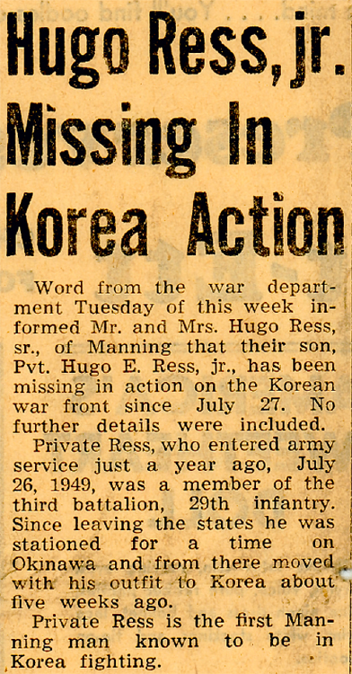 Unfortunately I have no military pictures of Hugo who was KIA in Korea, and very little military information