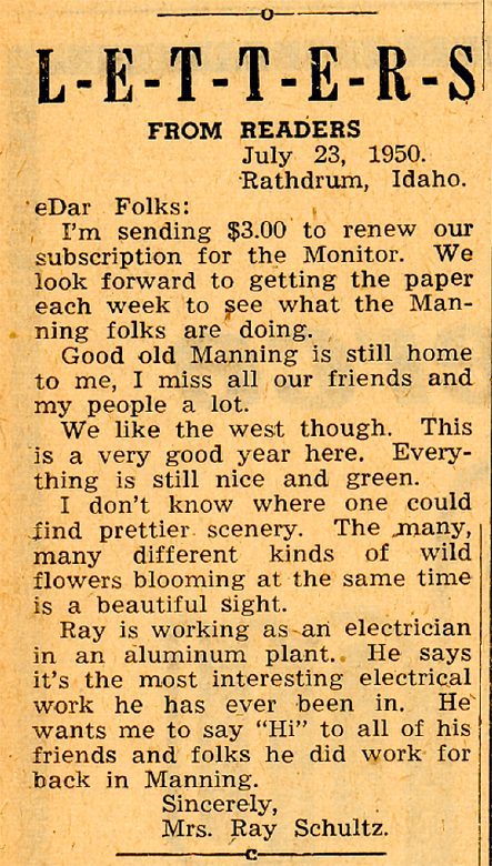 August 10, 1950, Manning Monitor