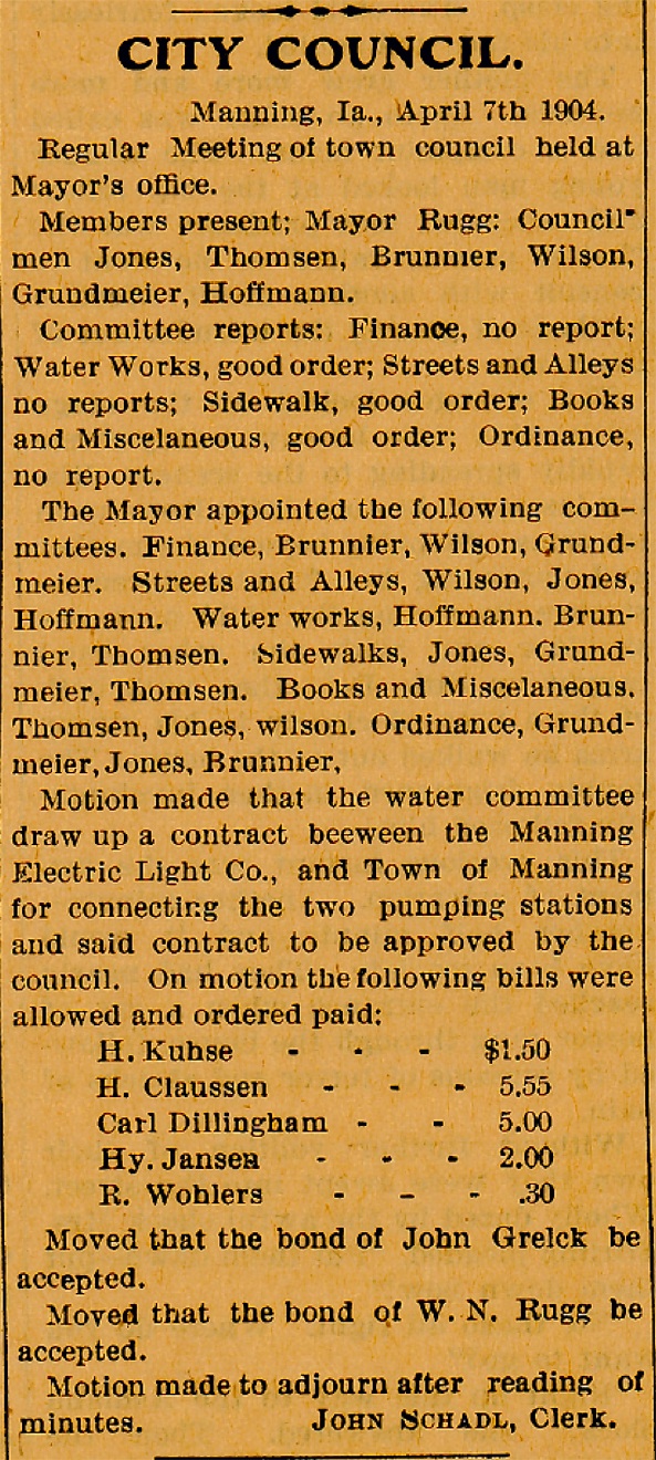 and showed that the women of Manning were also looking out for the welfare of the city.