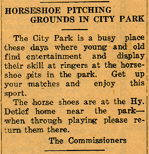 The last person I remember pitching horse shoes was Harold Vehrs who died in 1993.