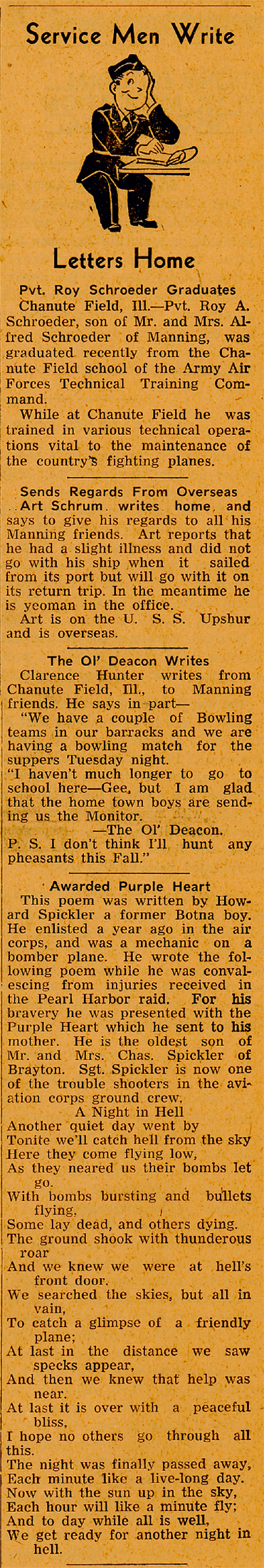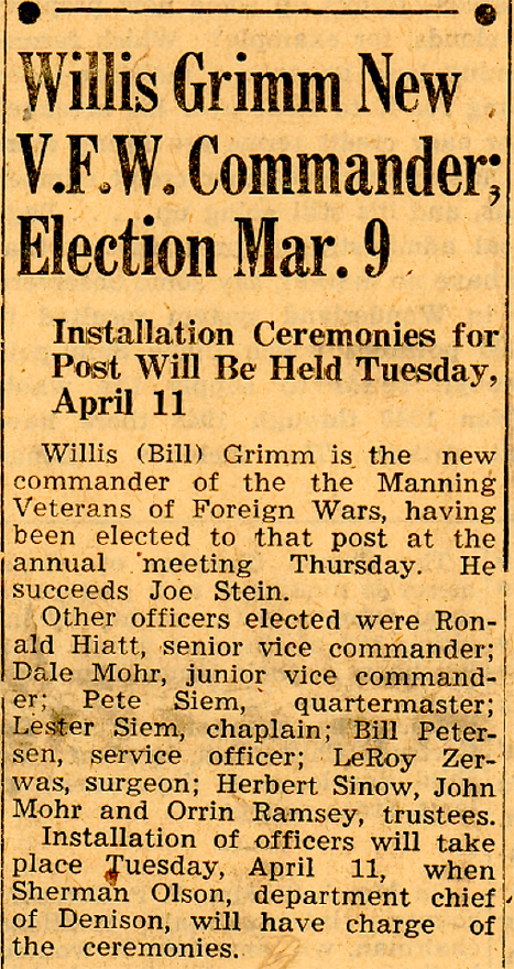 Just as a reminder: the Manning History book committee continues to work on a Manning area Veterans' history book