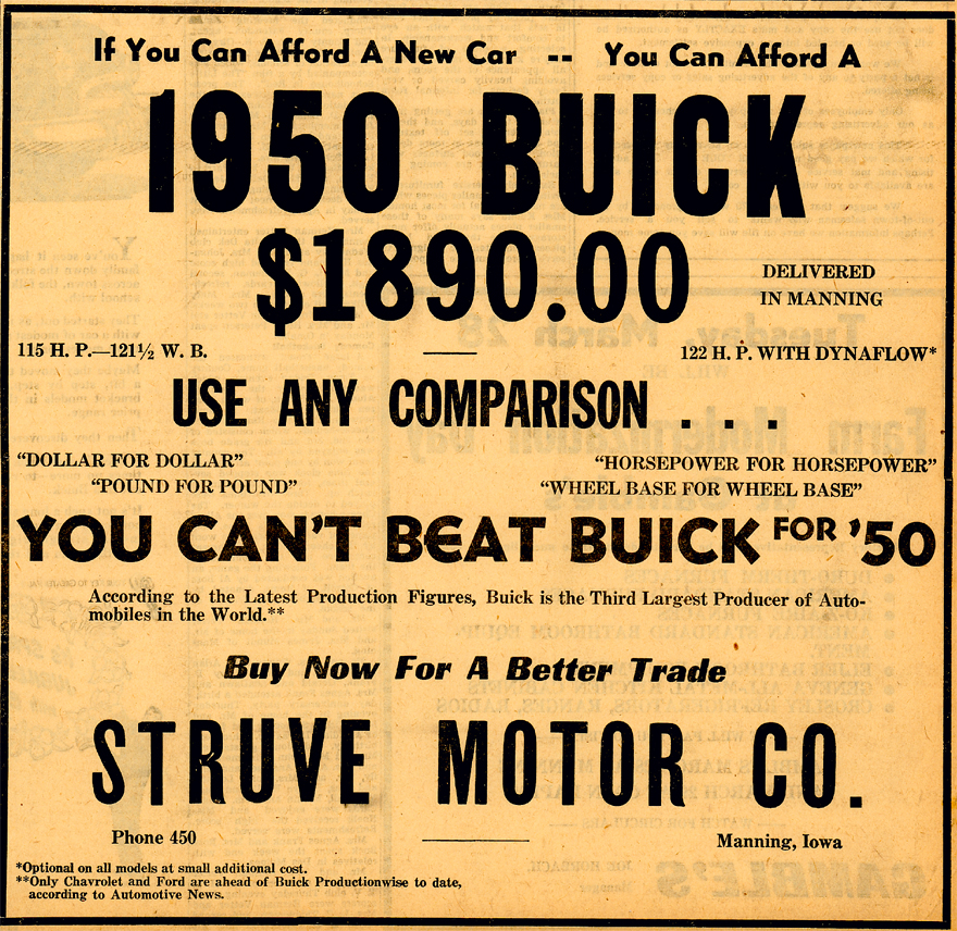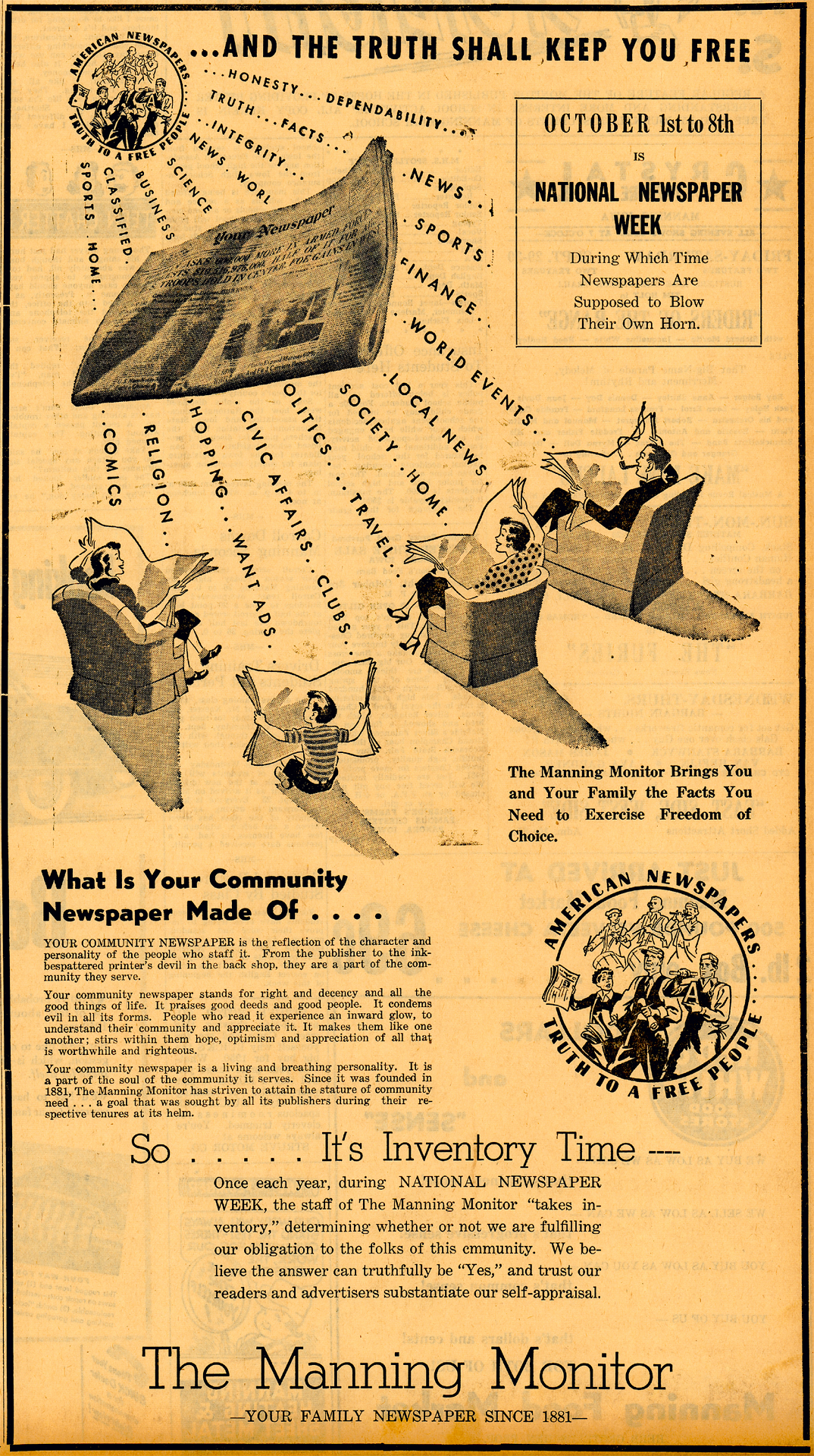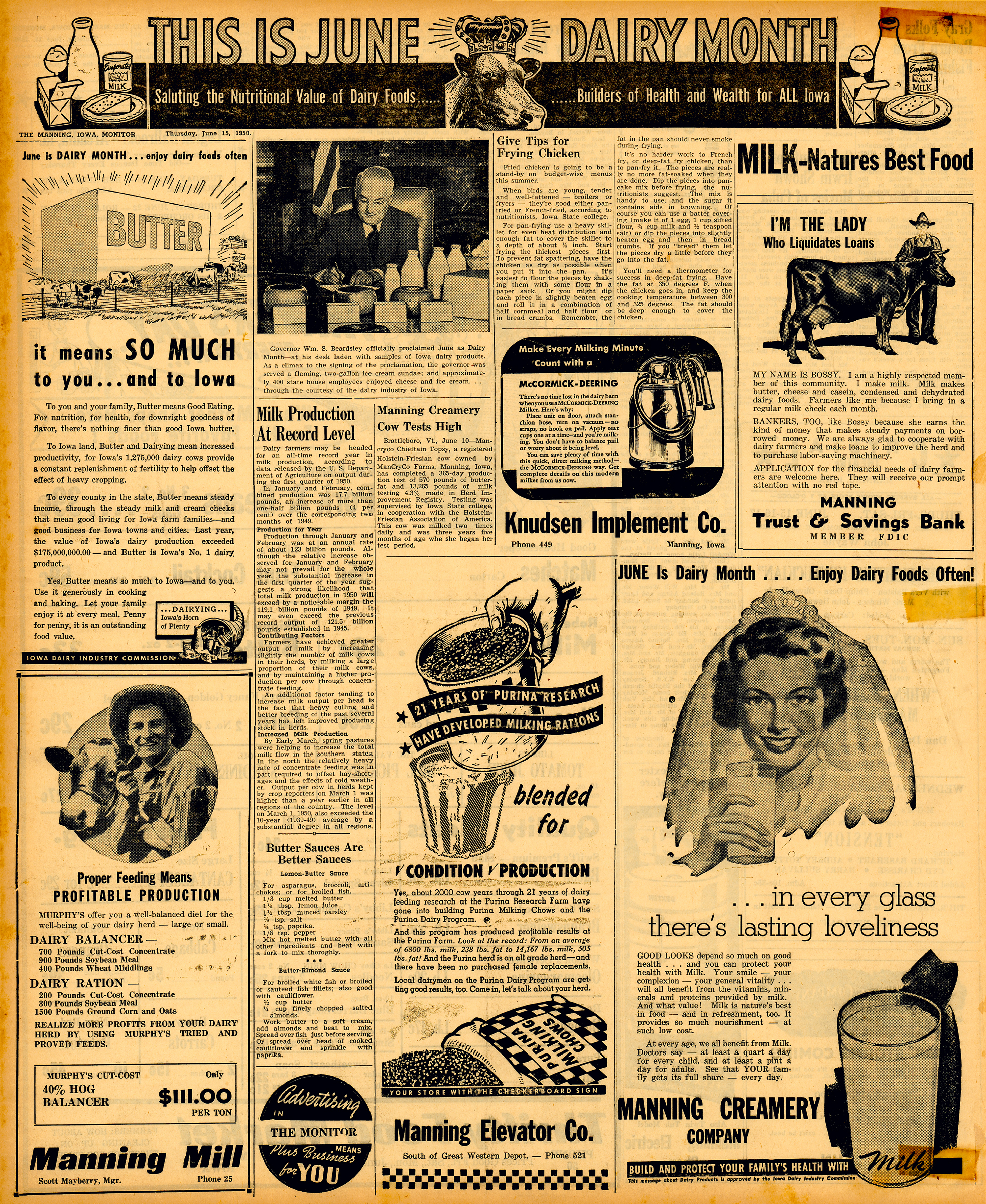 Full page ad - June 15, 1950, Manning Monitor
