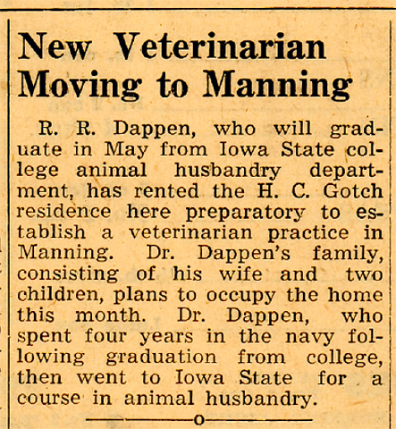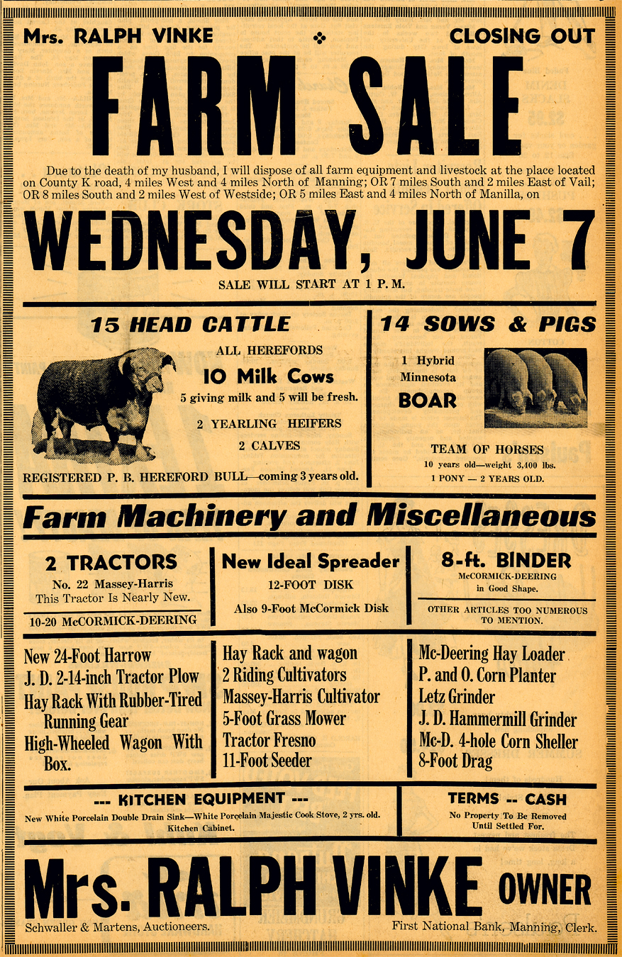 to a farm three miles north of Manning. In 1926, they moved to the Great
