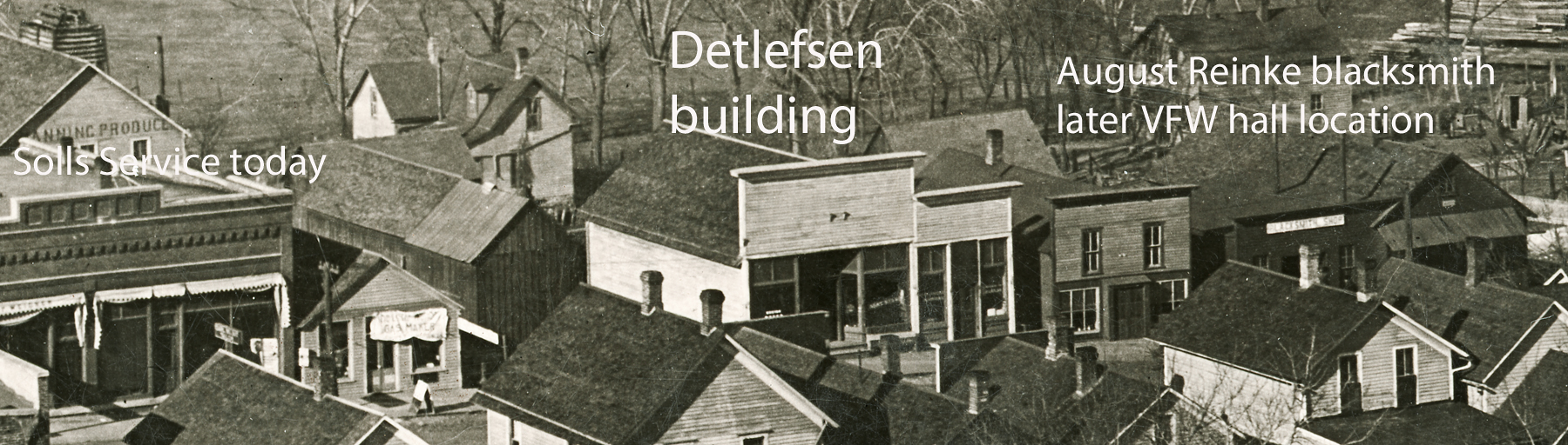 The building marked "Detlefsen" the larger part was a country church moved in from south of Manning