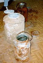 Remember that this was a barn in 1952 and was converted into a house during the GDR (German Democratic Republic) days so this is why there was a concrete floor here. To the left are the 3 cream cans that they hid the valuables and documents in for 40 years. |