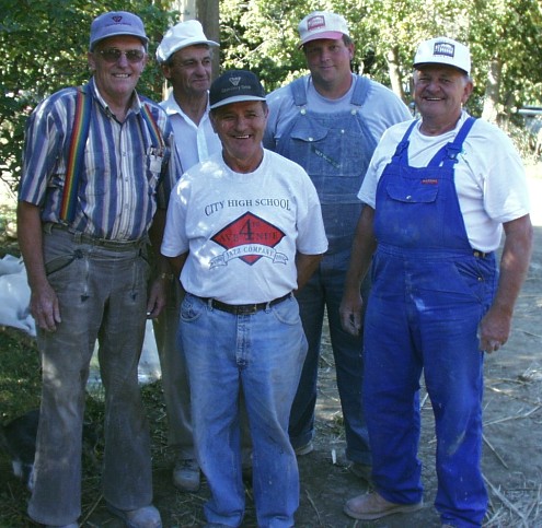 Helping as tenders for the brick layers were LeRoy Rowedder, Ken Jensen and Jeremia Macumber. In addition to the bricks that came from Germany, around 500, bricks were purchased in Chicago that were near die original size and color that will be used to finish the project. These bricks are old and were in construction in past years.