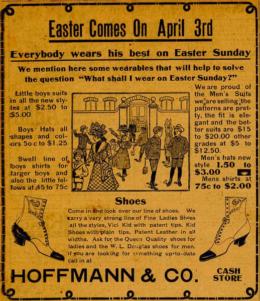 | Mrs. Elsie Jackson opened the Manning Beauty Parlor in December, 1928. Her shop was located over the Rober-Wehrmann Store, and assistant operators were hired to give the best of service to patrons. Permanents, marcels, haircuts and fingerwaving were featured. |