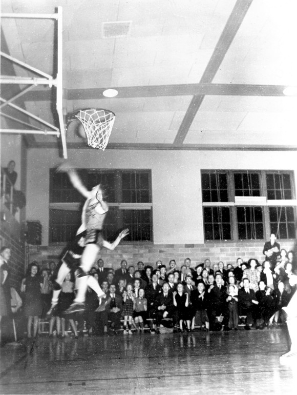 Late 1930s basketball game - north end of old gym.