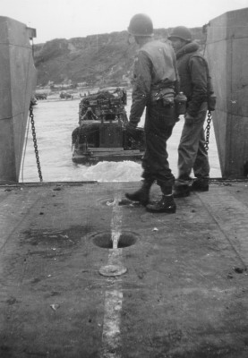 The lead amphibious tank that left their LCT during the initial landing was hit by a German 88 which killed all of the U.S. soldiers inside. Bud said these 88 shells would superheat the tanks along with shattering the steel hulls.