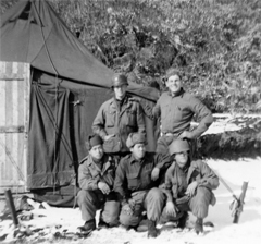 Meryl's group was divided into four sections, we'll call them 1, 2, 3, and 4. There was always one group in reserve. There would be three sections on the front line: Those in the very front, those in the middle, and those in the back. If 1, 2, and 3 were in the field, 4 would be in reserve. When 4 went out, they would take the place of 3, 3 would move up and take 2's, place, and 2 to 1. Number 1 would go into reserve until the next rotation. The men had to put in thirty-six rotations on the front before they could go home. This could usually be done in a little over a year. Because of this set-up, when you were in the front two lines you had North Korean mortars coming at you from the front and American mortars going over you from the back.