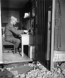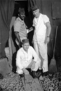 Officers lived in quonset huts, while the others lived in tents, sleeping on cots. They had one change of clothes. It was all very open, and Norb's locker was broken into; his clothes and the pictures he'd taken were all stolen. Shoe, a Chinese man, was the house boy for the cooks and kept the barracks clean. Shoe worked for the Army, and was so poor he would rummage through the garbage cans to take food home. The surrounding area was extremely destitute, and Norb said you could smell a town 5 miles before arriving there, as the garbage and human waste was out in the open. Residents washed their clothes and used water for cooking from rivers shared by water buffalo.