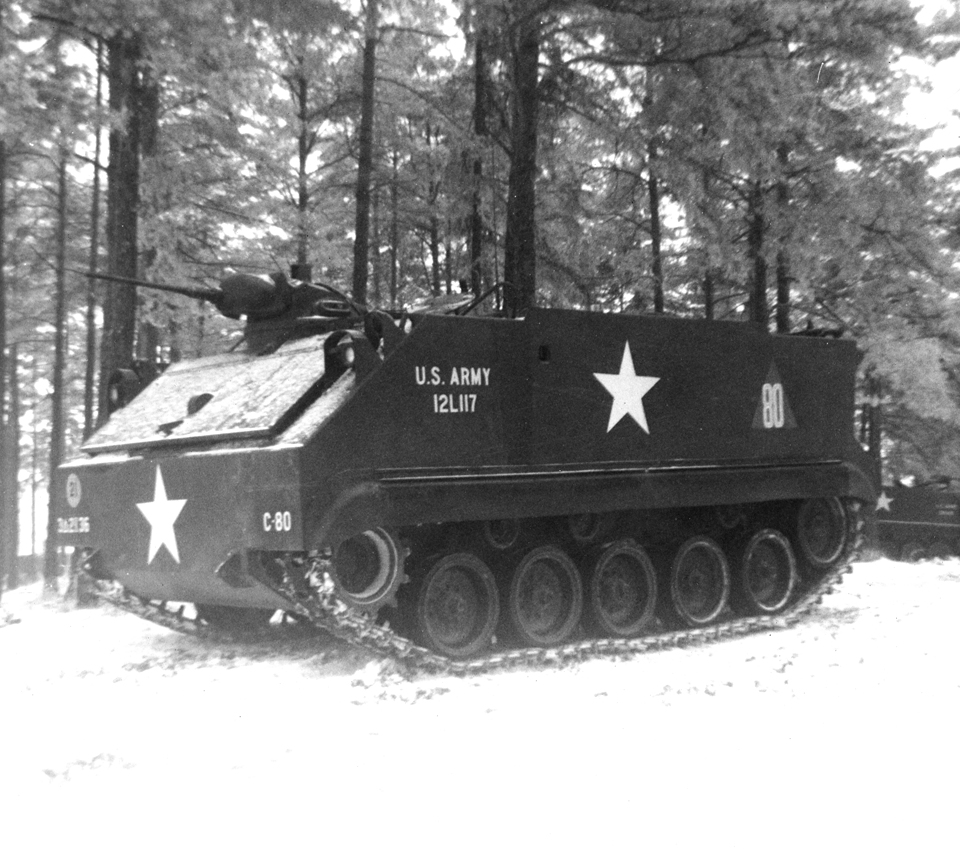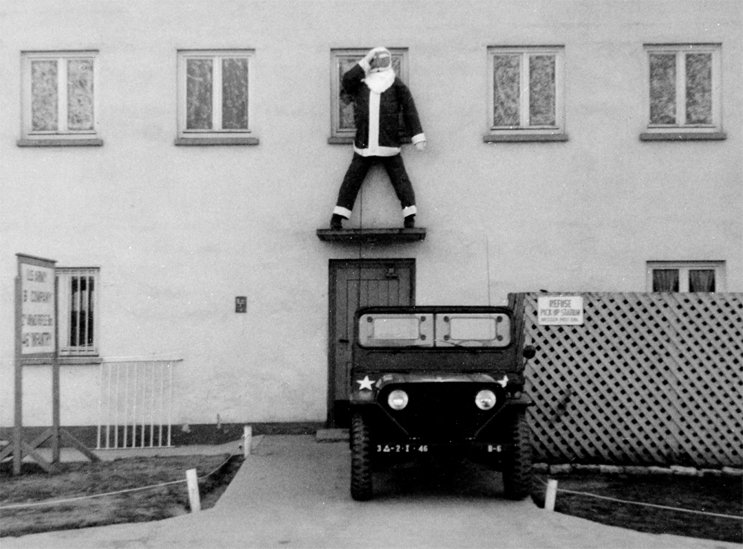 In front of the 46 Infantry building during Christmas