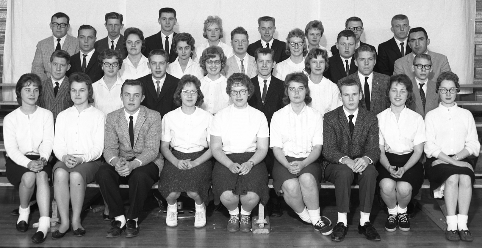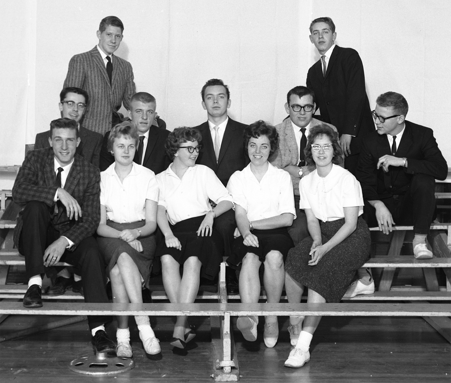 Third: Kenny Boell, Carol Beck, Lila Hargens, Terry Doyel, Marilyn Brus, Denny Frahm, Mr. Johnson