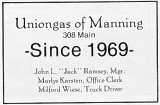 John served 18 years on the Town Council. He was on the first school board, serving several terms, and was school director of the township for two years. He was a charter member of the first Manning Fire Dept., and was active in many other community projects. He also played cornet in the Manning bands and orchestras.