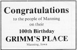 Herman attended Manning's first school of 61 pupils, held on the second floor of Callison's Hall, located on Main street where the present Dappen building stands. B.I. Sallinger was the first teacher; he became a Carroll County Judge. After a new school was built in 1883, Callison's Hall was occupied by a theatre, and after that housed Noble's Hotel.