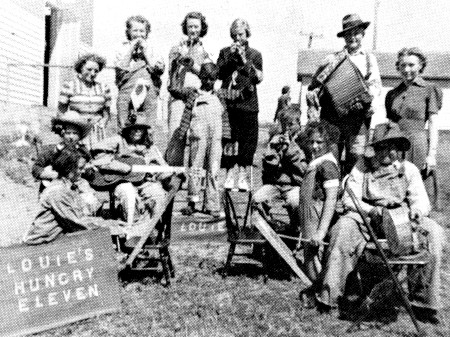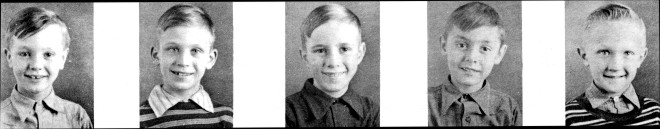 1943-1944 Four fourth grade pupils of Dorothy Ehrichs entertained at a Crawford County Teacher's Meeting in Denison. They sang, among others, "This is the Army, Mr. Brown" and "Comin' in on a Wing and a Prayer." Included were Roy Schilling, Wallace Schroeder, Gene Ehrichs and LeRoy Dammann.