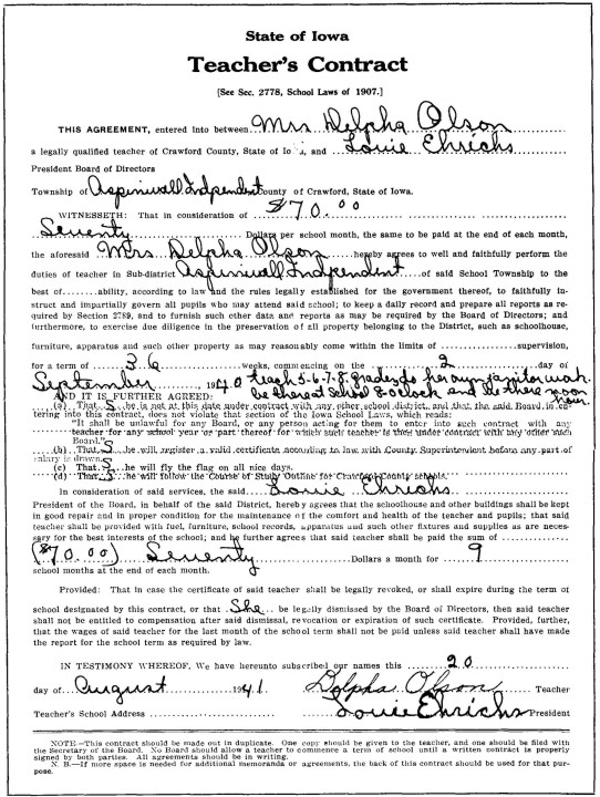 April 27: Mrs. Delpha Olson and Miss Helen Wegner took a group of their pupils to Denison Friday evening where they participated in an amateur contest. Those taking part were Robert Schilling, Donna Belle and Betty Lou Ehrichs, Laverne Boyens, Roy Soll, Alice Brady and Donna Schacht. Others who went from here were Mr. Clyde Olson, Mr. and Mrs. John Schilling and sons, Mr. and Mrs. W.J. Schroeder and family, Mr. and Mrs. Frank Ehrichs, Otto Haberlei and Wilmer Ehrichs.